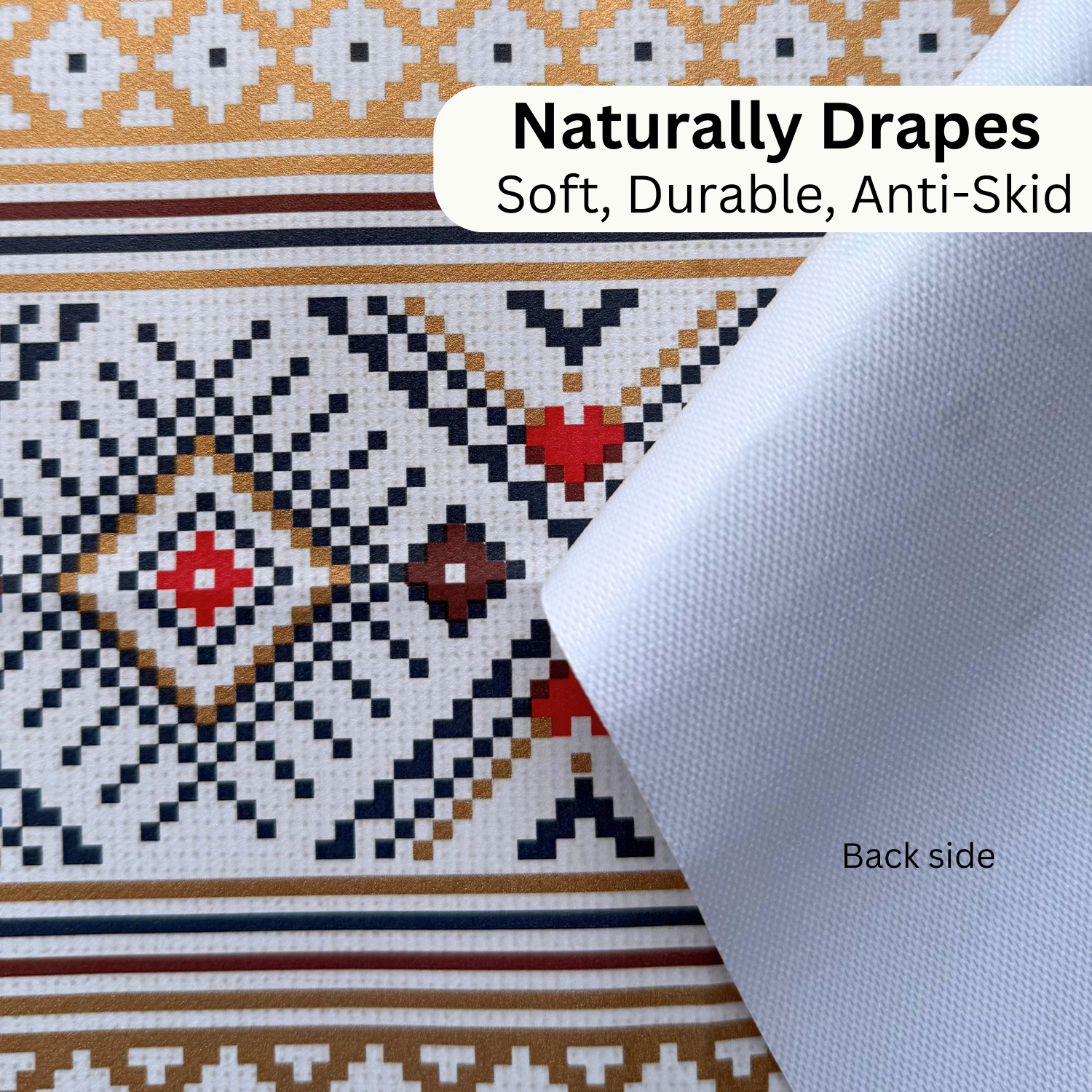 - MATERIAL: High Quality 100% vinyl material that is waterproof, spill proof and protects your table while being easy to clean with a damp cloth/sponge wipe. Our Vinyl material is such that its texture gives the feel of a cloth and not plastic, which enhances the overall experience.