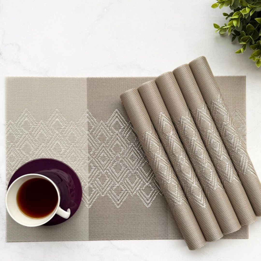 Livmodern Premium Vinyl Table Placemats - Set of 6 mats - Earthy Lattice