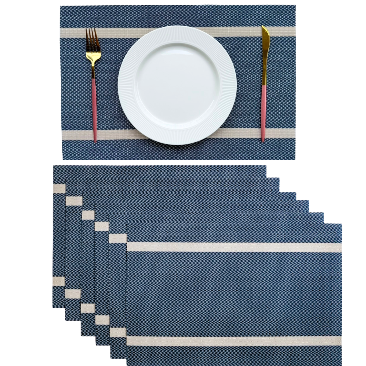 SET CONTENTS: Package includes 4 elegant Sapphire coloured placemats with a weave pattern design perfect for formal or casual dining settings.